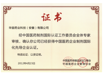 獲得中國(guó)醫(yī)保商會(huì)頒布的中國(guó)醫(yī)藥企業(yè)制劑國(guó)際化先導(dǎo)企業(yè)認(rèn)證證書(shū)